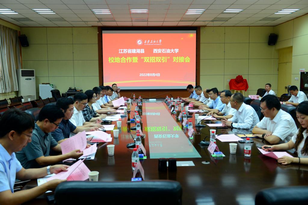 8月4日上午,我校與建湖縣校地合作暨“雙招雙引”對接會在雁塔校區會議中心第一會議室舉行。學校黨委副書記張木,建湖縣委常委、組織部部長、開發區黨工委書記孫紅,建湖縣委組織部副部長、縣委黨建辦主任孫盤檜,建湖縣科技局局長、黨組書記曾令群,建湖縣科技局副局長呂忠東及建湖縣有關石油石化企業負責人出席對接會。對接會由黨政辦公室主任趙健主持。