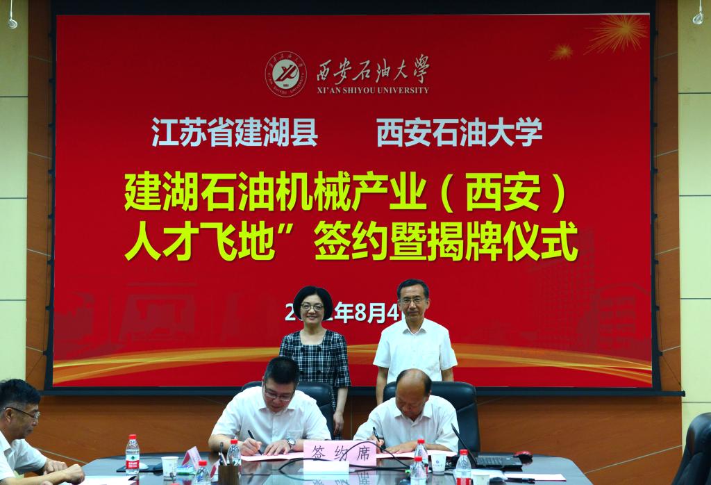 會上舉行了產學研合作簽約儀式。建湖縣鴻達閥門有限公司副總經理劉俊民與學校機械工程學院院長竇益華簽訂了校企產學研合作協議;建湖縣杰林石化機械有限公司總經理楊慶兆與學校機械工程學院副教授李明飛簽訂了技術開發(委托)合同;江蘇蘇博石化機械有限公司總經理孫勝清和學校機械工程學院博士李萬鐘、鹽城市煜洋石油機械有限公司總經理崔文祥與學校機械工程學院博士李鎖斌分別簽訂了“科技副總”意向合作協議書;孫盤檜與學校合作發展處處長蔡上游簽訂了“建湖石油機械產業(西安)人才飛地”合作協議。孫紅與張木共同為“石油機械產業(西安)人才飛地”進行了揭牌。