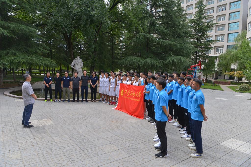 7月18日下午,陜西省第十七屆運動會西安石油大學代表團出征儀式在雁塔校區鐵人廣場隆重舉行。代表團團長、校體育運動委員會主任、副校長陳軍斌出席儀式,體育學院負責人以及全體參賽教練員和運動員參加儀式。出征儀式由賽事總聯絡員、體育學院群體競賽負責人張樂強主持。