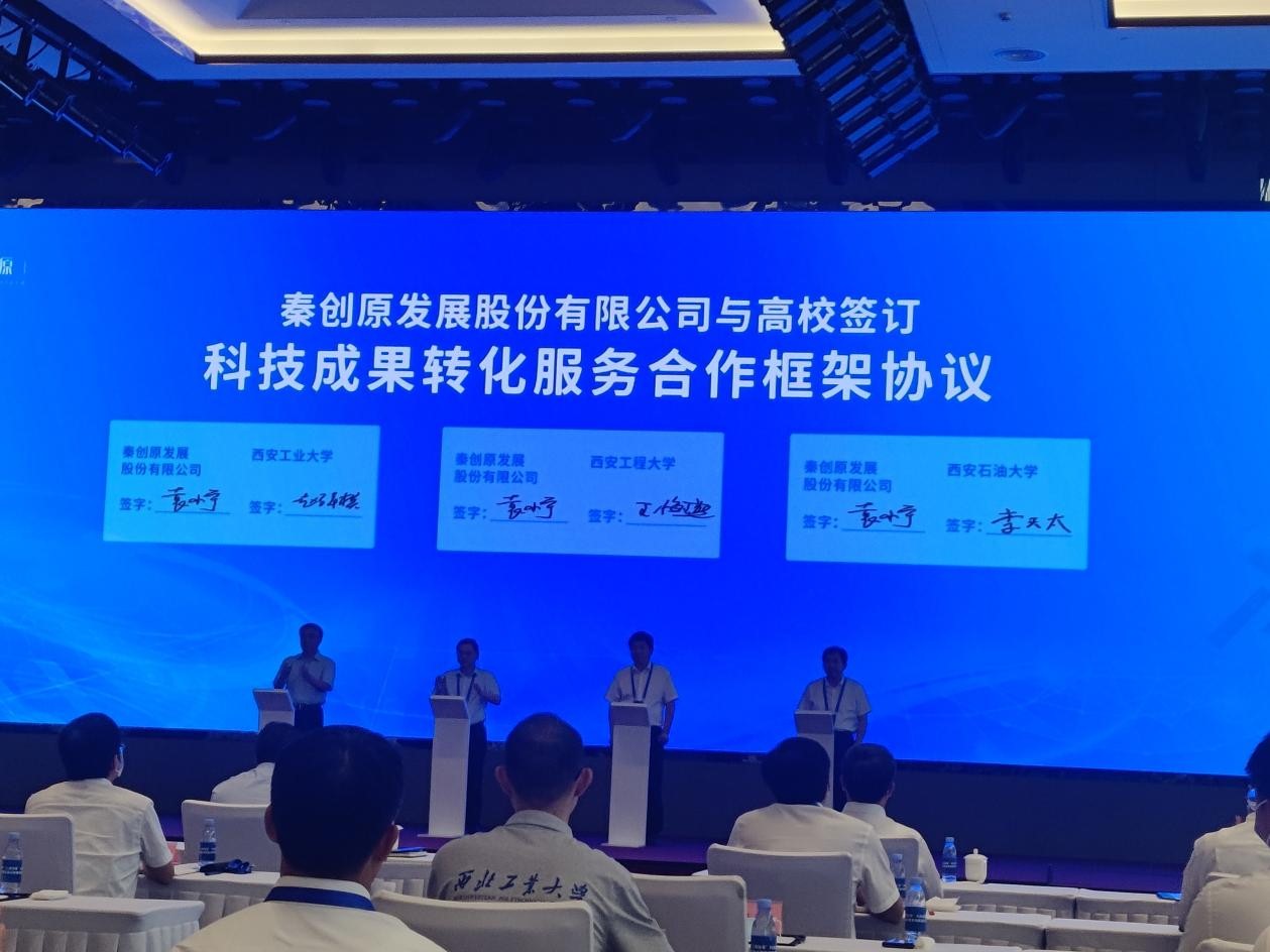 7月13日,全省高校院所“三項改革”科技成果轉化項目集中路演啟動儀式暨首場路演活動在秦創原創新驅動平臺總窗口舉辦。省長趙一德宣布全省高校院所“三項改革”科技成果轉化項目集中路演活動啟動。省委常委、常務副省長王曉,省委常委、西安市委書記方紅衛出席。我校校長李天太在主會場參加活動,并代表學校與秦創原發展股份有限公司簽署科技成果轉化服務合作框架協議。我校在雁塔校區會議中心設立分會場,副校長張榮軍、相關職能部門負責人和教師代表在分會場參加活動。