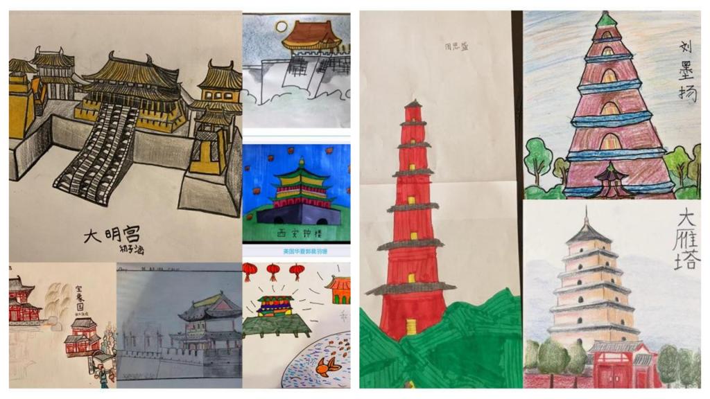 這10天的云端學習,小營員們在老師的帶領下,云游在中華五千年悠久歷史文明的長河中,學習以長安為都城的漢、唐兩朝有趣的歷史故事,了解歷史典故;學習書法、剪紙、太極拳和古箏,感受妙趣橫生的中華傳統文化;云游長安城,打卡西安城墻、書院門、鐘樓等,聆聽西安的人文故事,探尋長安城的變遷;云端探尋回民街、品味一碗羊肉泡饃里的市井煙火;走進王進喜鐵人紀念館,聆聽石油背后的故事,感知永不言棄的鐵人精神。小營員們在認真學習的基礎上,做到學有所思,學有所獲,學有所悟,通過錄制音頻、視頻、繪畫圖文等方式制作完成各種打卡作品,增加了小營員們的參與感和對中華傳統藝術的興趣,更加深刻地感受中華傳統文化的魅力,每個人都力爭成為中華優秀傳統文化的小小傳播者。