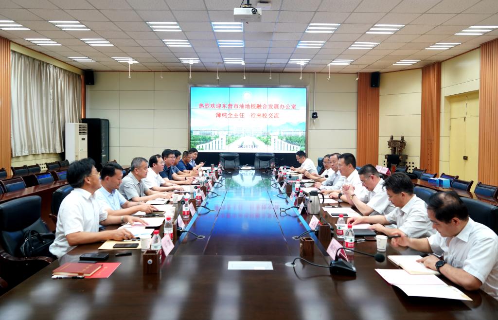 薄純全對學校提供的交流機會表示衷心感謝,并介紹了東營市的基本情況和油地校融合發展辦公室的主要職能。他希望,雙方發揮好各自優勢和特色,圍繞東營市“5+2+2”產業體系,在能源化工、裝備制造和新能源新材料等領域深入開展技術和人才合作,并建立全面、緊密、長期的合作關系,推動校地雙方共同發展。