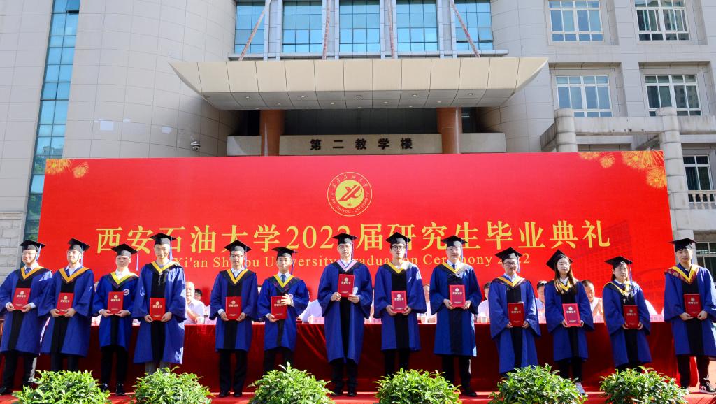 副校長陳軍斌宣讀了《西安石油大學關于授予孫恒濱等1133名研究生碩士學位的決定》,校黨委副書記張木宣讀了《西安石油大學關于表彰2022屆優秀研究生的決定》,副校長楊戰社宣讀了《西安石油大學關于表彰2022年優秀碩士學位論文作者及指導教師的決定》,校黨委副書記雷西合宣讀了《西安石油大學校友總會關于聘任2022屆年級校友理事的決定》。與會校領導為研究生優秀畢業生代表、優秀碩士學位論文作者頒發了榮譽證書,為年級理事代表頒發了聘任證書。