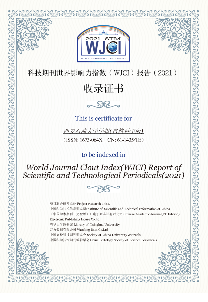 另外,《西安石油大學學報(自然科學版)》繼續入選《科技期刊世界影響力指數(WJCI)報告(2021)》,WJCI值為0.582,期刊影響力和競爭力穩步提升,本刊編輯部將繼續堅持高質量辦刊宗旨,開拓創新,不斷提高期刊質量。