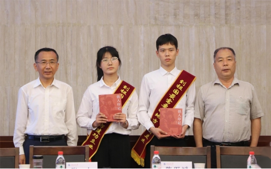 座談會后,張木和陳軍斌代表學校向畢業生代表贈送了書籍。