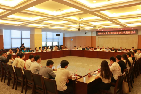 6月24日上午,2022屆畢業生代表座談會在我校鄠邑校區圖書館第一會議室召開。校黨委副書記張木、副校長陳軍斌,黨政辦、學工部、研工部、保衛處、校團委、教務處、實驗室管理處、后勤處、高評中心、圖書館等部門負責人以及來自各學院的2022屆本科生、研究生代表參加了座談會。