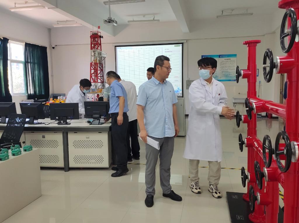 匯報會議結束后,檢查組細致認真地查閱了我校實驗室安全工作有關資料,并對我校工程訓練中心、陜西省石油石化虛擬仿真實驗中心、石油工程學院實驗室、化學化工學院實驗室、危險化學品庫房的日常安全工作進行了實地檢查。相關學院的主要領導和實驗室負責人向檢查組介紹了實驗室日常管理和使用情況。