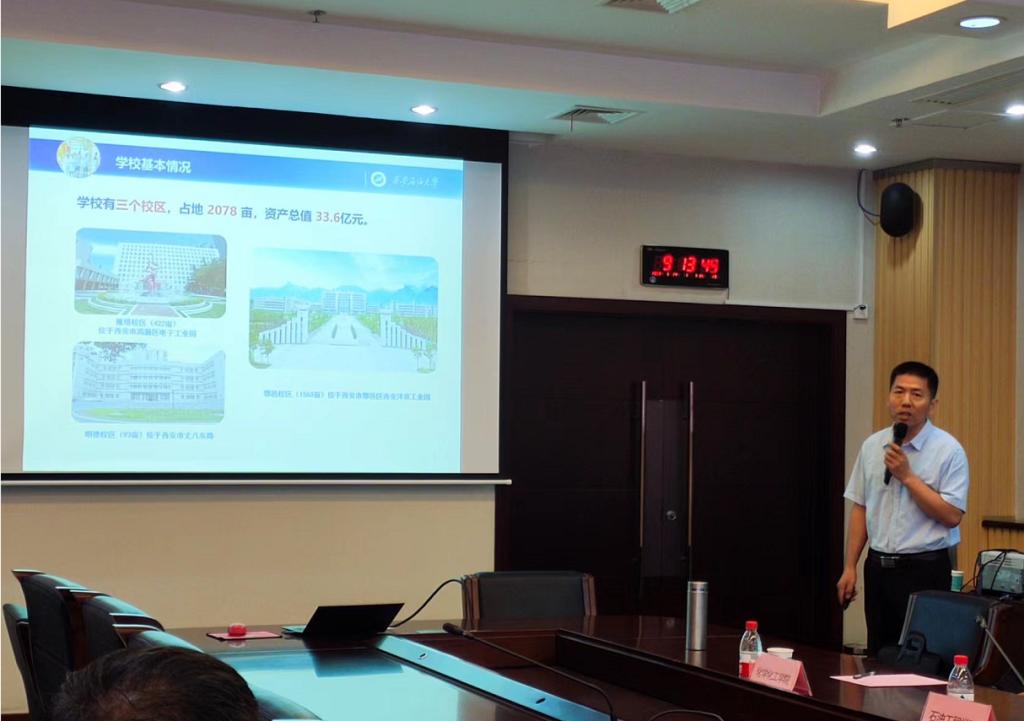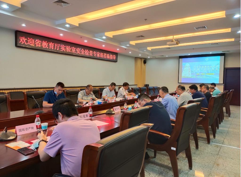 陳軍斌首先代表學校致辭,他對檢查組一行蒞臨我校檢查實驗室安全工作表示熱烈的歡迎,并向檢查組介紹了學校的基本情況,誠摯希望檢查組一行對我校實驗室安全工作多提寶貴意見,指導我校實驗室安全工作再上新臺階。隨后李群力傳達了教育部《關于開展加強高校實驗室安全專項行動的通知》(教科信廳函〔2021〕38號)及省教育廳辦公室《關于開展2022年度高校實驗室安全實地檢查工作的通知》(陜教技辦〔2022〕4號)精神。他指出學校各級領導和廣大師生要切實提高政治站位,深刻認識實驗室安全工作的極端重要性,確保實驗室安全平穩運行。實驗室管理處副處長李慶本從我校及實驗室工作基本情況、實驗室安全工作主要舉措、實驗室安全工作存在的主要問題以及下一步的重點工作三個方面向檢查組做了詳細匯報。