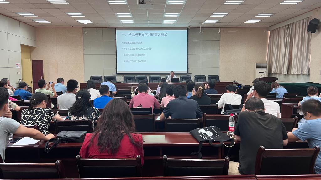 在授課中,張木指出,馬克思主義揭示了人類社會的發展規律,是認識世界、改造世界的科學真理。百年以來,中國共產黨堅持把馬克思主義寫在自己的旗幟上,不斷推進馬克思主義中國化時代化,用博大胸懷吸收人類創造的一切優秀文明成果,用馬克思主義中國化的科學理論引領偉大實踐。張木從馬克思主義產生的歷史背景、解決的基本問題以及馬克思主義理論的三大體系、鮮明特征、學習方法、馬克思主義政治經濟學等方面,詳細講授了馬克思主義的基本原理,指出學習馬克思主義是我們終生的事業,要深入學、系統學、反復學、了然于胸學、學用結合學,將馬克思主義作為人生的指南。張木最后強調,習近平新時代中國特色社會主義思想是當代中國馬克思主義、二十一世紀馬克思主義,是中華文化和中國精神的時代精華。當代青年學習和實踐馬克思主義,最根本的就是要自覺以習近平新時代中國特色社會主義思想鑄魂立德。
