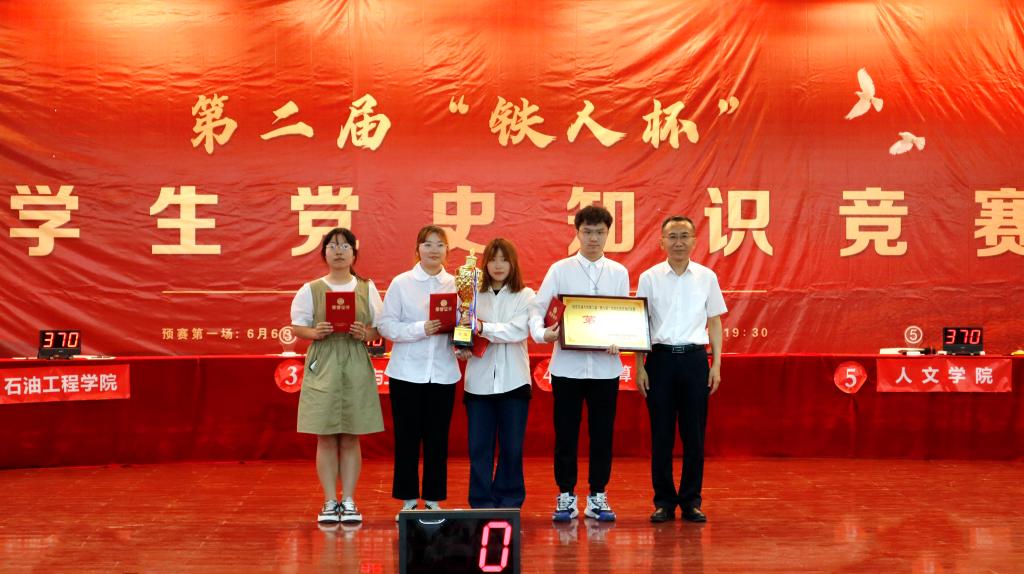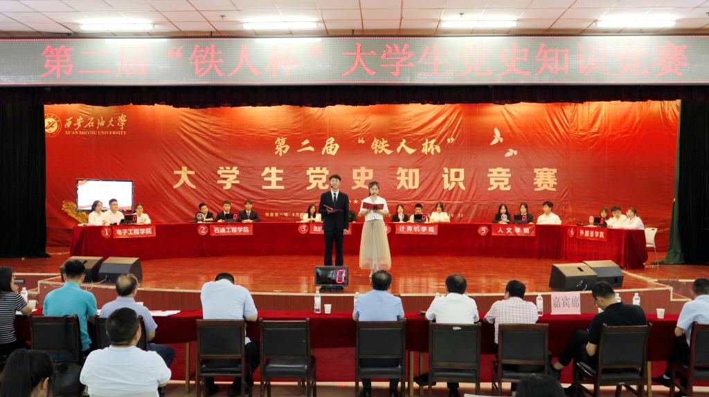 6月13日晚,由馬克思主義學院、教務處主辦,組織部、宣傳部、學工部、校團委協辦的第二屆“鐵人杯”大學生黨史知識競賽決賽在鄠邑校區騰輝大學生活動中心隆重舉行。校黨委副書記張木出席,相關部門負責人、教師及學生代表參加本次活動。經過兩場初賽,電子工程學院、石油工程學院、地球科學與工程學院、計算機學院、人文學院、外國語學院六支代表隊進入決賽。