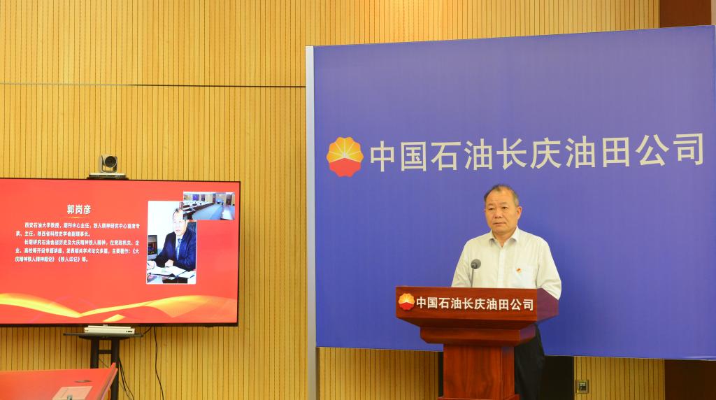 我校鐵人精神研究中心首席專家、主任郭崗彥作為特邀專家發言。他從“偉大奮斗歷程,錘煉偉大精神”“偉大創新實踐,豐富偉大精神”“胸懷偉大夢想,當好標桿旗幟”三個方面談了體會。他談到,中石油是石油精神和大慶精神鐵人精神的首要傳承者和忠實實踐者,在教學研究中,我們始終把中石油作為研究樣本和實踐基地,密切關注中國石油黨組在宣傳思想文化方面的決策部署,特別是在新時代弘揚石油精神和大慶精神鐵人精神的情況。他表示,2021年9月,中國石油黨組將1949年9月25日玉門油礦解放日設定為“中國石油紀念日”,這不是一個簡單的時間節點的選擇,是中國石油黨組黨史學習教育的重要成果,它體現了對石油歷史文化傳統的尊重和珍惜,也是對老一輩石油人偉大精神的挖掘和英雄事跡的追憶。學好歷史,我們才能把握未來,標定前進的方向,正是有了這種現實的歷史觀,共和國波瀾壯闊的石油奮斗史才能在新時代凝練成為更強大更持久的精神力量。
