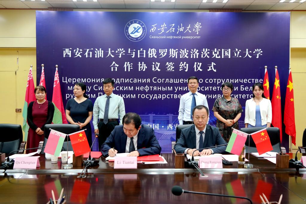 波洛茨克國立大學國際處、國際教育學院、化學化工學院、交通學院,我校石油工程學院、化學化工學院、外國語學院、國際教育學院、國際交流與合作處等負責人參加了合作簽約儀式。