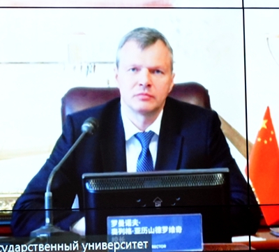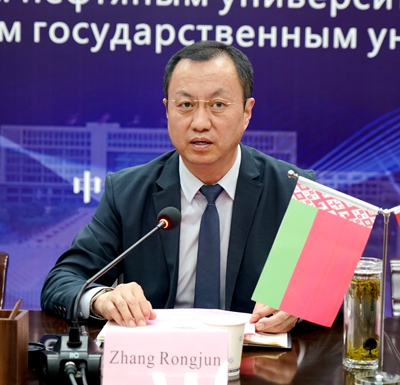 奧列格·羅曼諾夫在致辭中表示,中國是最可靠的合作伙伴,他們已經做好了與我校開展全方位合作的準備。他說,波洛茨克國立大學是白俄羅斯50多所高校中最領先的院校之一,擁有先進的教學科研設施,與白俄羅斯、俄羅斯石油化工企業聯系緊密,雙方學校是理想的國際合作伙伴。相信兩??梢猿浞职l揮各自優勢,合作共贏、共同發展,實現合作交流的常態化、合作成果的長效化,并期待新冠疫情早日結束,雙方學??梢越涣骰ピL,促進合作項目的多元化。