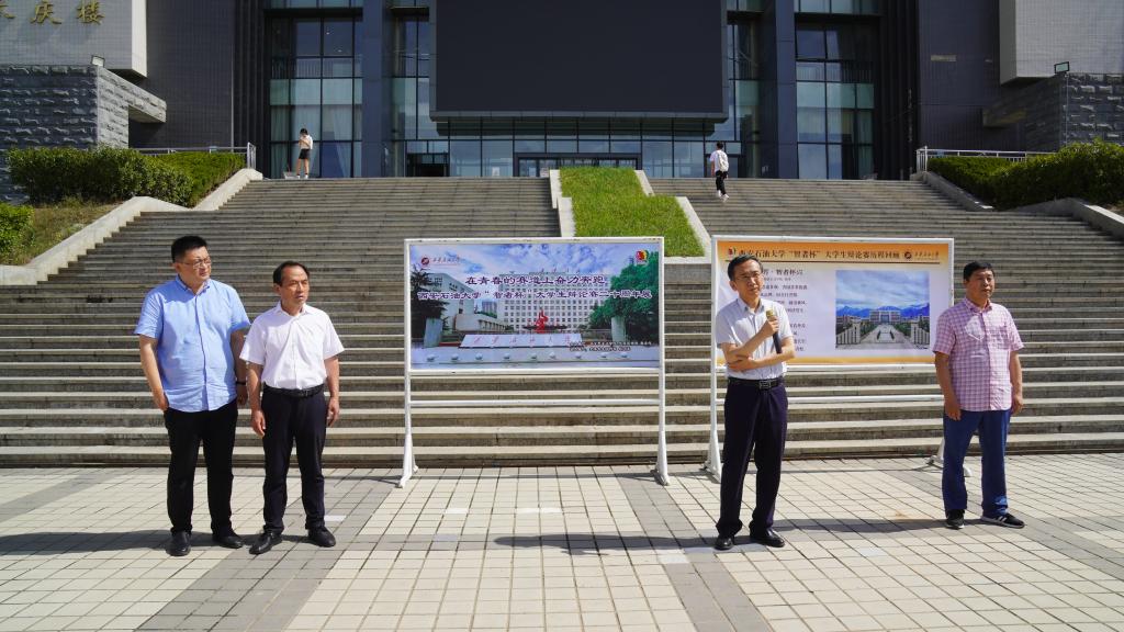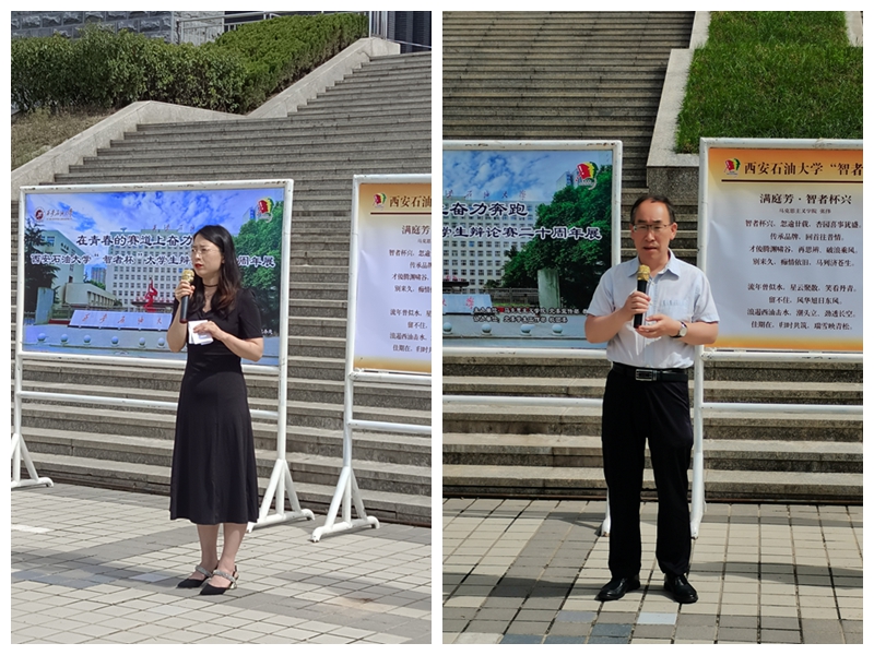 為進一步貫徹落實習近平總書記在學校思想政治理論課教師座談會上的重要講話精神和習近平總書記在中國人民大學考察時的重要講話精神,充分發揮“智者杯”大學生辯論賽在大學生思想政治教育和思政課育人中的作用,將立德樹人根本任務走實走深,6月6日上午,我校在鄠邑校區圖書館南廣場舉行“在青春的賽道上奮力奔跑——西安石油大學‘智者杯’大學生辯論賽二十周年展”。校黨委副書記張木出席活動并講話。黨委宣傳部、學生工作部、教務處和馬克思主義學院負責人,各院(系)黨委副書記、思政課教師代表、學生代表參加活動,活動由馬克思主義學院黨總支書記張偉主持。
