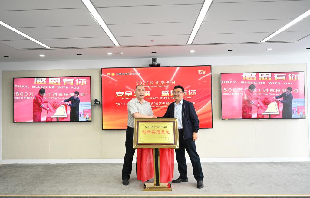 陳軍斌與楊勇共同為實踐基地揭牌,實驗室管理處副處長陳子恒和長北分公司副經理、總地質師趙忠軍代表雙方簽署了合作協議。根據協議,長北作業分公司每年接受我校石油工程、地質資源與地質工程、安全工程、機械設計制造及其自動化等專業本科生和研究生的實習。
