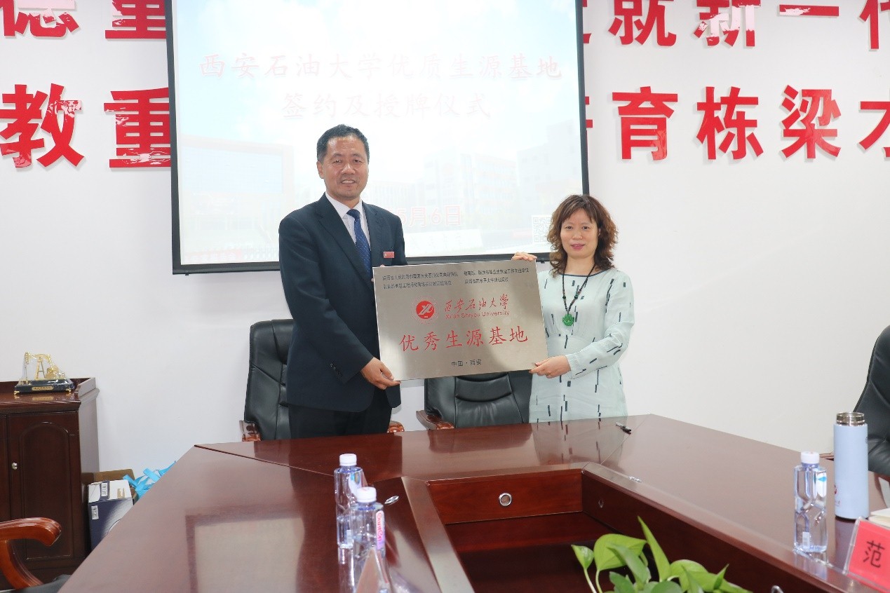 會上,雙方簽訂了“西安石油大學優秀生源基地”協議書,王君萍代表學校向澄城縣城關中學授牌。