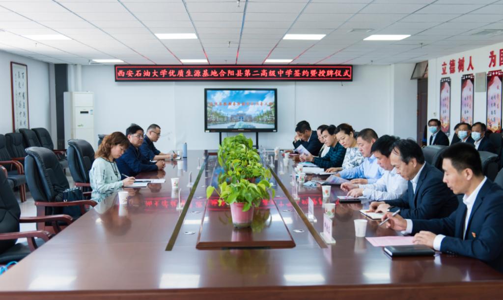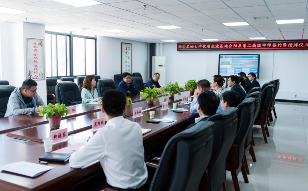 王改代表縣委、縣政府對樊曉民一行的來訪表示歡迎,對西安石油大學建立“優秀生源基地”,帶動合陽教育事業發展表示感謝。她希望學校以此為契機,加大與西安石油大學的合作交流,努力探索構建多渠道、多層次交流合作的長效機制和生源質量監控體系,為高校培養更多優秀生源,努力辦好人民滿意的教育。隨后,范智遠詳細介紹了合陽縣第二高級中學的發展歷程、辦學特色和教學成果,并希望兩校以后能夠保持常態化的對接,能夠在學生的專業選擇、研學活動、心理輔導等方面實現合作共贏。