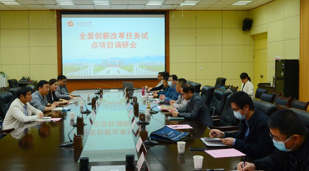 程永清對張霖之、解中一行來我校開展調研和指導表示歡迎,同時感謝市發改委和科技局長期以來對我校事業發展的關心和支持。他指出,西安石油大學作為國家全面創新改革任務實施主體單位之一,深感任務艱巨,責任重大。目前,我校的揭榜任務在市發改委、科技局以及其他相關部門的支持下取得了階段性成效,但改革過程非常不容易,更大的挑戰和困難還在后面,需要沖破一些阻力、破除一些障礙。在接下來的工作中,學校將以此次創新改革試驗為帶動我校發展的重大契機,凝心聚力,積極穩妥地的推進“三項改革”,加快形成制度文件并產生示范案例,保質保量完成揭榜任務,為我省科技發展貢獻西石大力量。