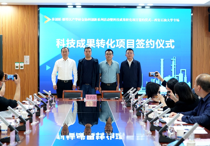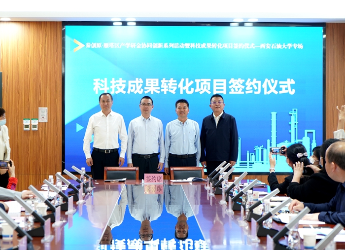 2022年4月25日,我校與雁塔區人民政府、西安市科學技術局聯合主辦的“秦創原·雁塔區產學研金協同創新系列活動暨科技成果轉化項目簽約儀式—西安石油大學專場”在雁塔區政務服務中心隆重舉行。張榮軍副校長出席活動,學校科技處負責人及科研教師代表參加活動。