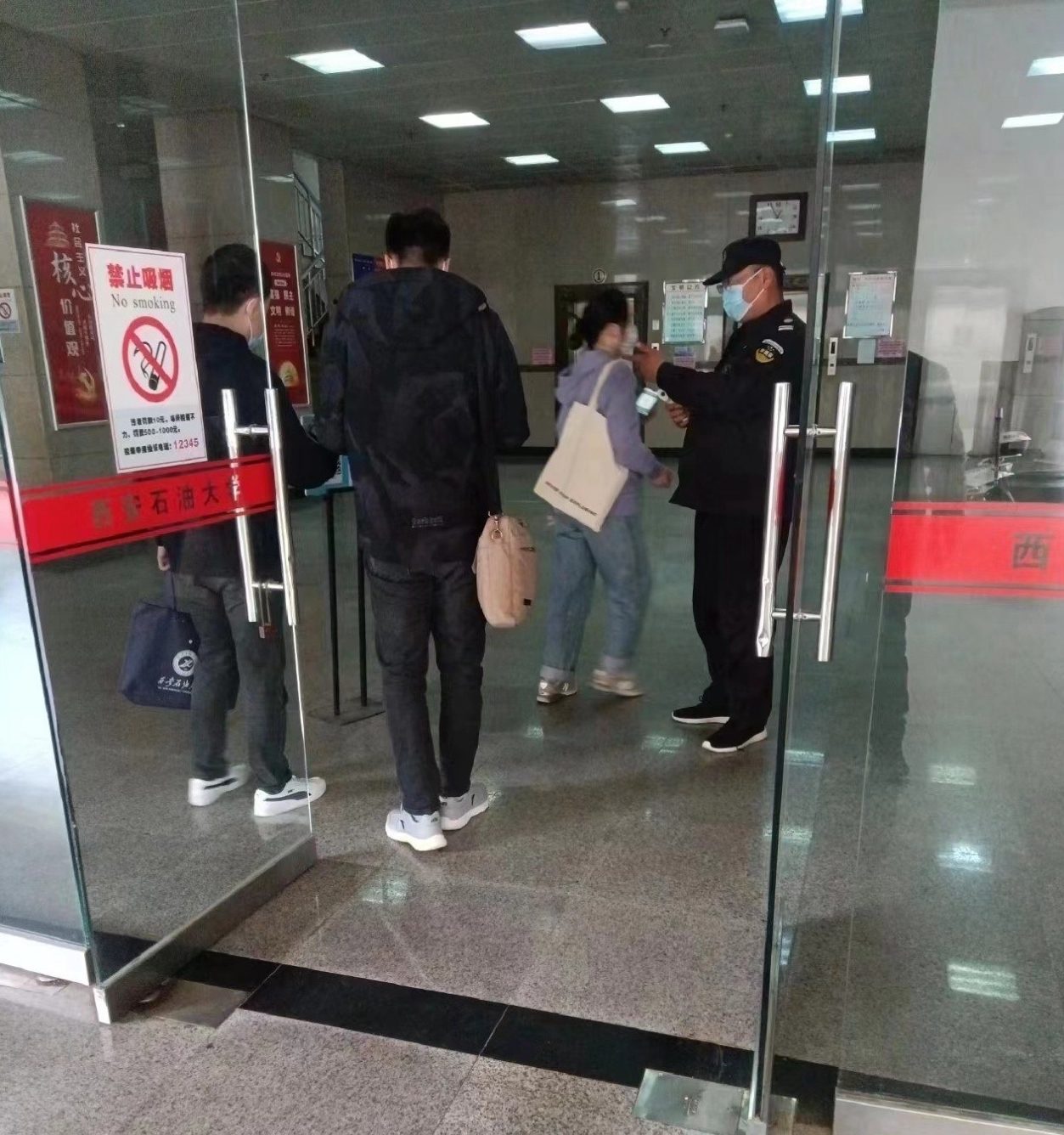 嚴格執行考務文件,確??荚嚬接行?。學校嚴格執行陜西省和學??紕瘴募?,加強考務管理,強化考場紀律。嚴格按照要求,安排專人做好保密室值班。監考教師考前抽簽、一科一輪換,監考人員和參考人員手機一律裝入小信封放在考場外,確??紙龉?、有序??荚嚠斕?,主考、副主考到達考場巡視和檢查考點考務情況和考場紀律情況,校醫院負責人檢查隔離備用考場情況等疫情防控具體工作。保衛處組織專人嚴格測溫、收取《2021年陜西省高校教師資格教育基礎理論知識考試考生健康承諾書》。