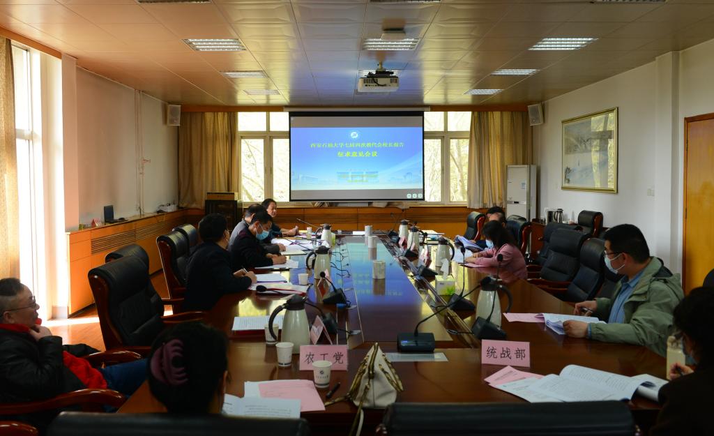 4月1日下午,黨政辦、統戰部在雁塔校區行政樓五樓會議室組織召開七屆四次教代會校長報告征求意見會,聽取各民主黨派、無黨派人士、僑聯、知聯會、留聯會負責人的意見和建議,會議由統戰部部長吳復雷主持。