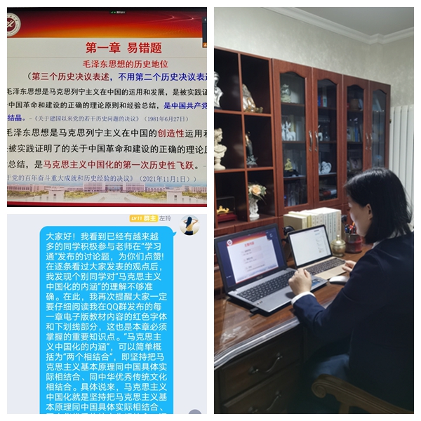 戰勝疫情,思政課不能缺席,思政課教師更不能缺位。馬克思主義學院院長張海濤表示,特殊時期的線上教學,不僅是應對疫情防控的應急之策,更是思政課教學改革的重要契機。學院要充分發揮思政課教學標兵的示范引領作用,積極推動傳統教學和網絡教學的融合創新,切實提高線上思政課教學實效,將社會主義核心價值觀融入教育教學全過程,充分彰顯習近平新時代中國特色社會主義思想的真理力量。