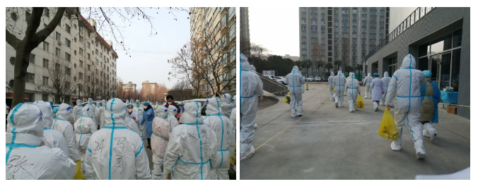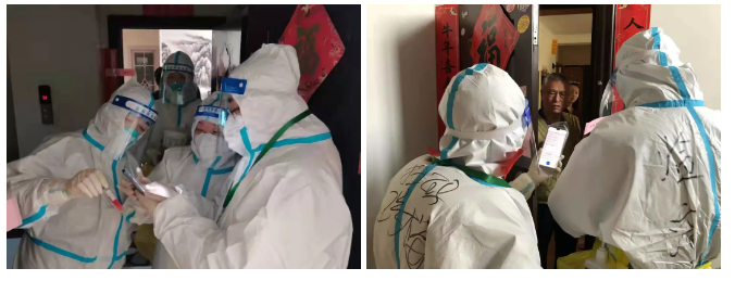 清晨7:30,樓長和單元長經過必要的防疫知識培訓,穿好防護服,帶領醫護人員來到各自負責的家屬樓,挨家挨戶敲門、掃碼、協助核酸檢測,逐一記錄。