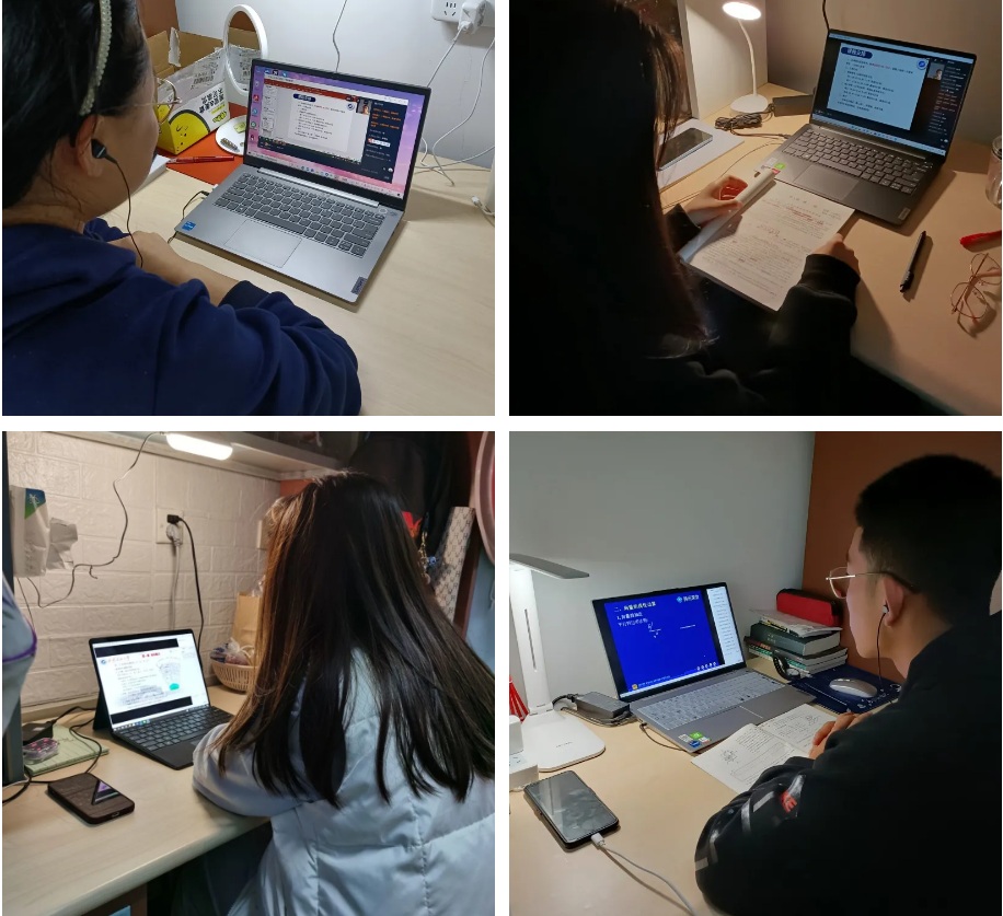 “停課不停學”,我校學子通過電腦、平板、手機等設備進入直播課堂,在宿舍認真地上網課。 戴上耳機,聚精會神,思路緊跟老師的節奏。沒有課程的時間也要自主學習,寫作業、查論文、瀏覽信息。自我的時間,更要好好管理,用筆記錄課堂知識要點。