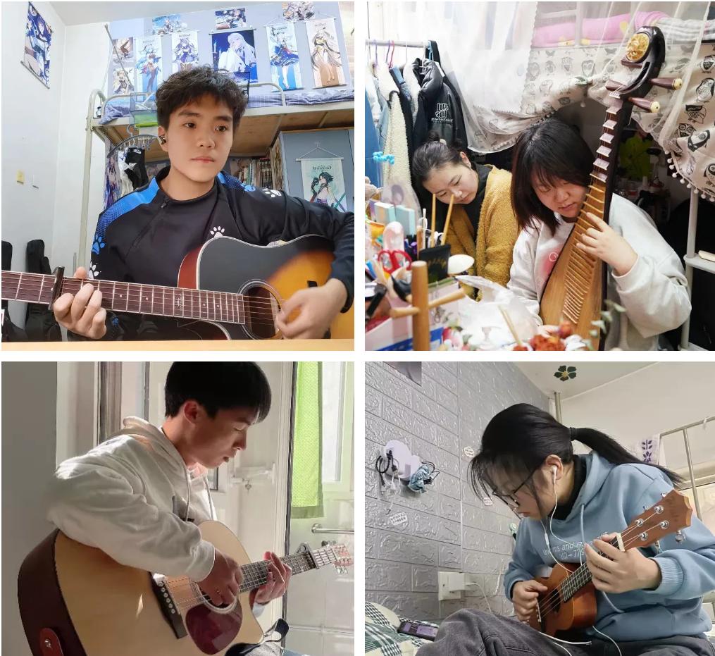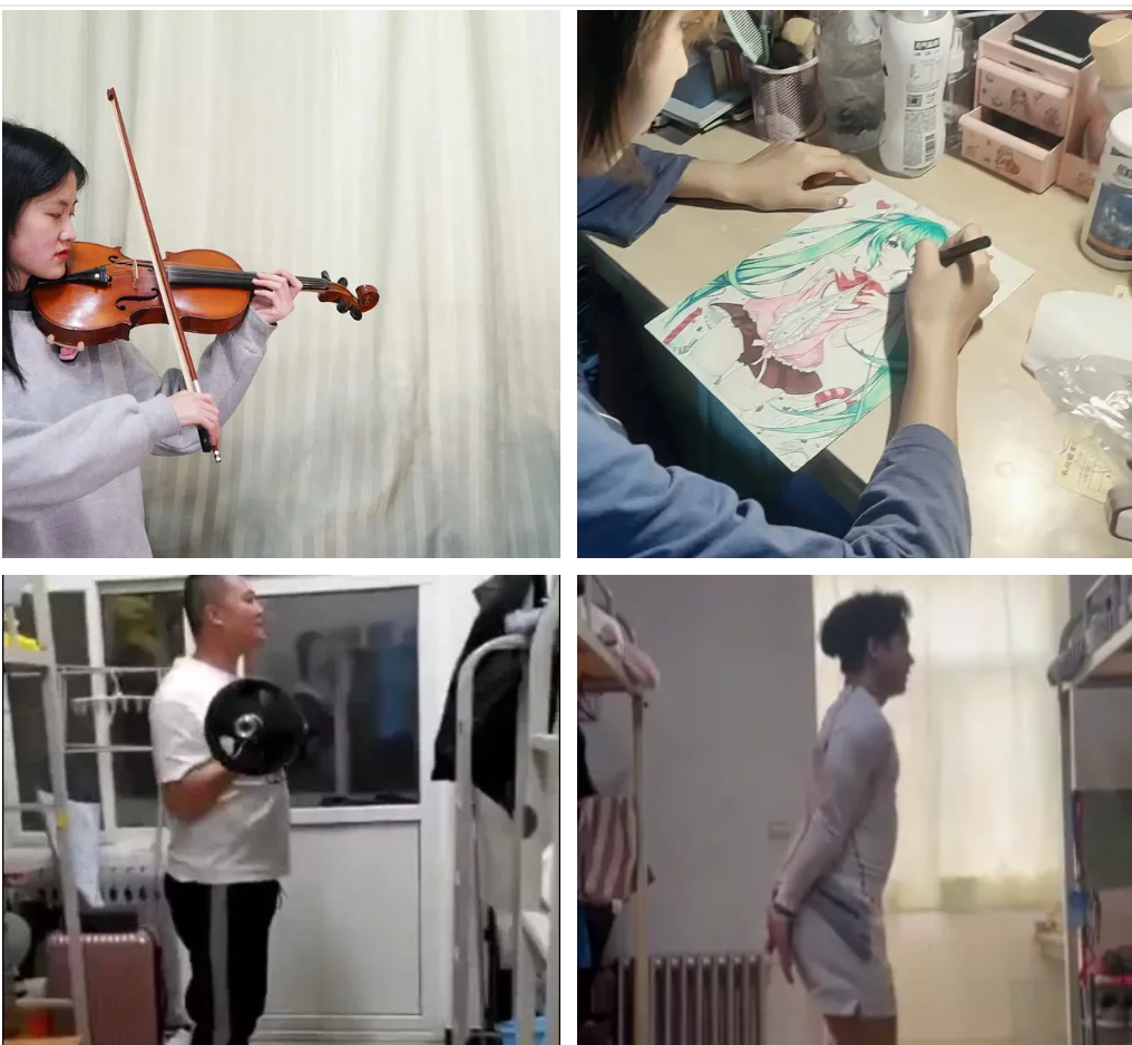 學子們的課余生活也豐富多彩。時而撫琴一首,愉悅身心,時而休閑鍛煉,強身健體。凝聚抗疫力量,鼓舞抗疫斗志,學子們發揮特長創作文藝作品,凝聚起師生抗擊疫情的信心和勇氣。