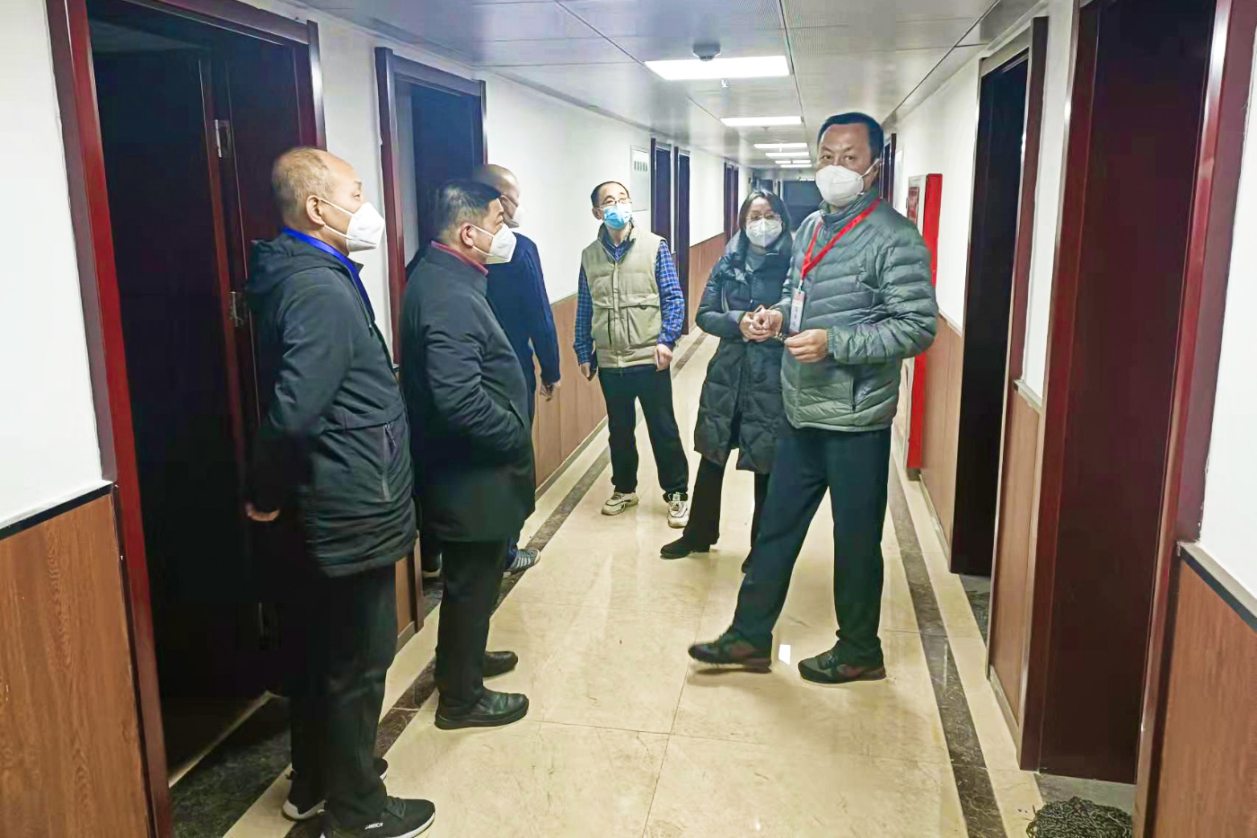 張榮軍副校長一行深入國際教育學院、繼續教育學院,檢查指導兩個學院的疫情防控工作,查看留學生和培訓學員的學習、生活情況,檢查隔離區工作,并對連日來奮戰在明德校區的教職員工、后勤保衛人員、第三方服務人員表示慰問和感謝。張榮軍副校長還聽取了駐明德校區合作單位的防控工作匯報,仔細詢問了現階段防控工作任務完成情況、下一步措施和目標,就持續加強核酸檢測、加快推進隔離轉運、做好環境消殺等相關工作做了針對性要求。