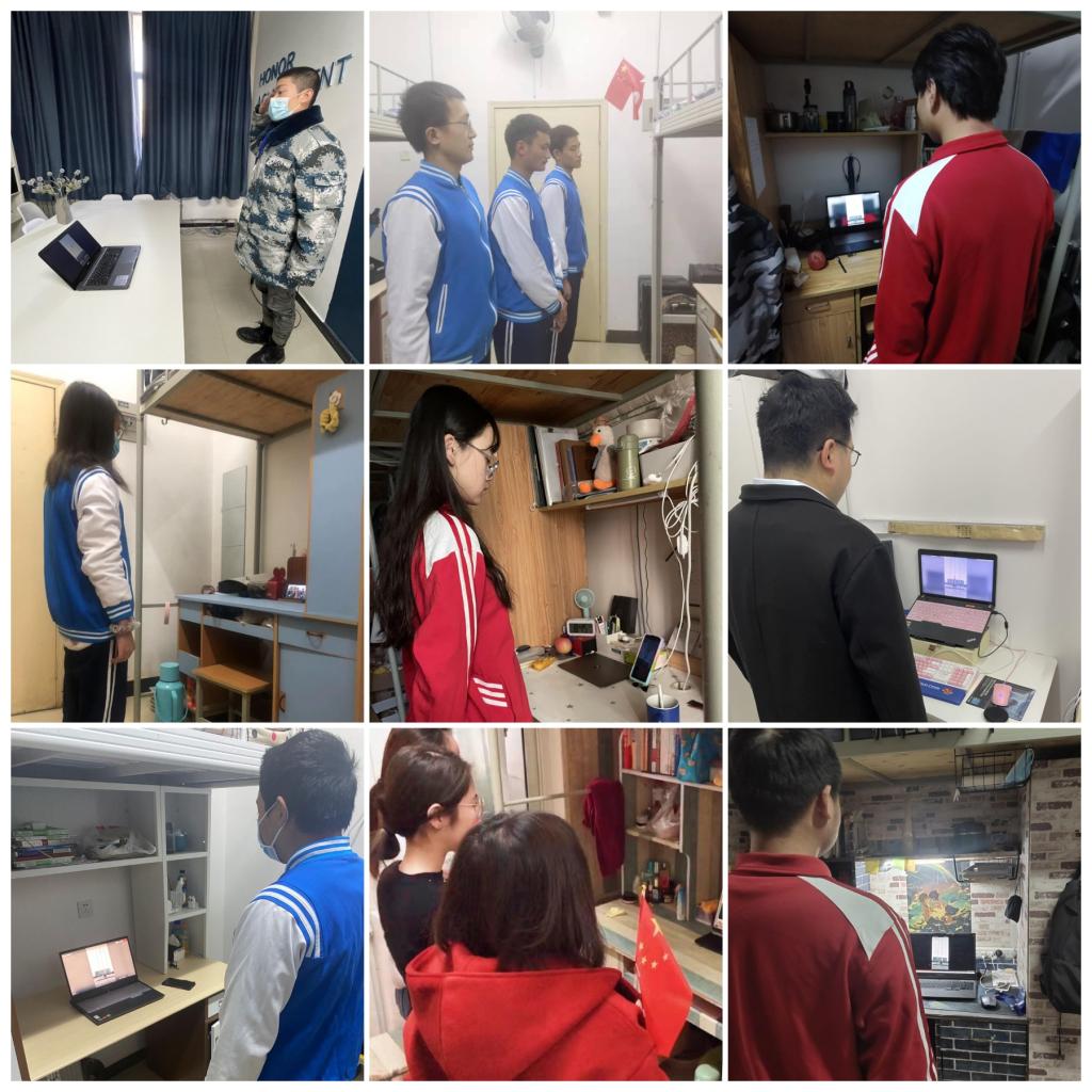 這是一場在特殊時期通過網絡直播的升國旗儀式。伴隨著激昂的《義勇軍進行曲》,我校師生們在宿舍通過觀看屏幕中冉冉升起的五星紅旗,高唱國歌,行注目禮,表達對祖國的無限熱愛與戰勝本次新冠疫情的堅定信心。