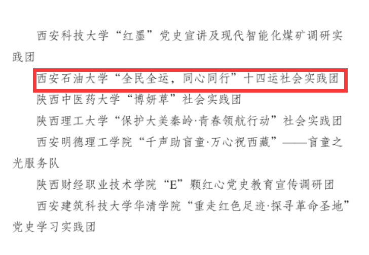 該實踐團由13名2020級和2019級資源勘查工程、地質學和石油工程專業學生組成,先后深入西安市雁塔區、新城區、鄠邑區與奧林匹克體育中心進行暑期社會實踐調研,通過志愿服務、實地考察、發放問卷、個人訪談、文獻調研等方法完成了《大型賽事對城市的影響——以第十四屆全國運動會為例》(15000余字)的調查報告,并在學術期刊發表論文2篇。團隊事跡也受到社會各界廣泛關注,包括“陜西日報-群眾新聞網”“三秦都市報”“陜西工人報”“西安晚報-西安發布”“瀟湘晨報”等10余家媒體對此次活動進行了報道。