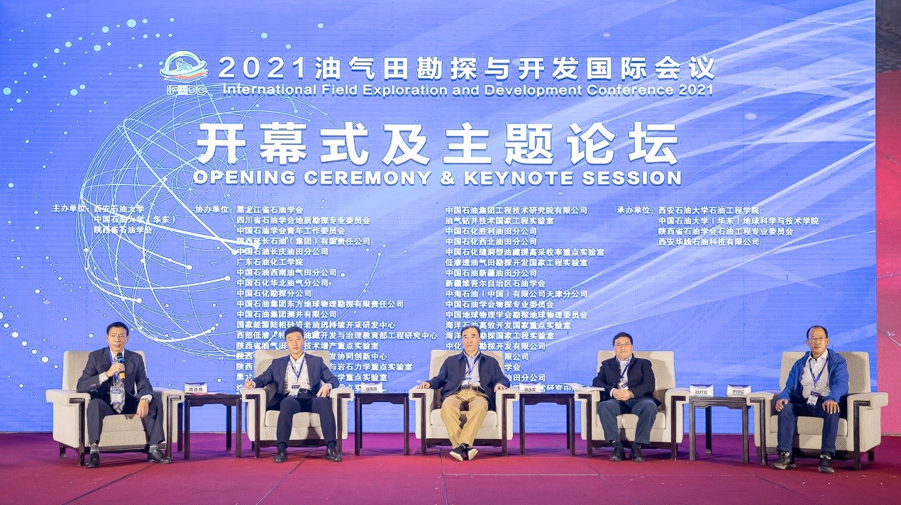 近日,由我校、中國石油大學(華東)、陜西省石油學會聯合主辦的2021油氣田勘探與開發國際會議在青島開幕。會議采取線上線下相結合的方式,圍繞“監測技術驅動油氣高效開發”的主題,從監測技術角度探討如何利用人工智能實現油氣田的高效勘探與開發。主辦方中國石油大學(華東)副校長姚軍作為東道主致歡迎詞,我校副校長張榮軍代表會議主辦方及會議發起單位講話。大會開幕式和主題論壇由我校石油工程學院院長周德勝主持。