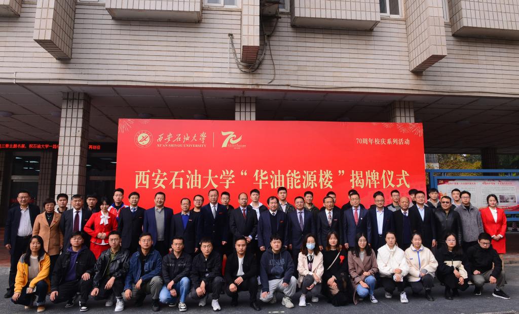 七十年風雨兼程,七十年春華秋實。為慶祝學校70華誕、深化校企合作,11月5日上午,我?!叭A油能源樓”揭牌儀式在雁塔校區第一教學樓前隆重舉行。華油能源集團有限公司執行董事兼行政總裁吳東方、總裁助理文舉,我校黨政領導李天太、張木、雷西合、張榮軍出席揭牌儀式。學校相關職能部門及院系負責人、學生代表參加揭牌儀式。揭牌儀式由校黨委副書記雷西合主持。