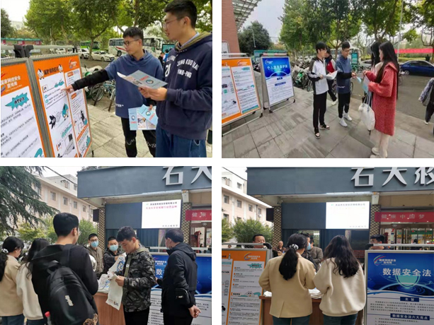 10月12日,學校下發了《關于積極參與2021年國家網絡安全宣傳周校園日活動的通知》,號召全校師生積極參與2021年國家網絡安全宣傳周校園日系列活動。校園活動日當天,學校分別在雁塔校區和鄠邑校區校車乘車點、食堂等人流量大的區域放置展板,發放布袋、知識手冊等多種宣傳資料千余份,發送網絡安全宣傳短信4000余條。