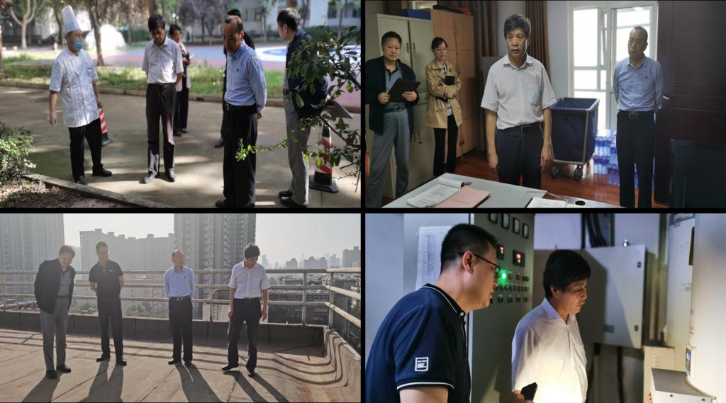 楊戰社副校長一行先后對學院餐廳后廚、客房、隔油池、培訓中心北樓樓頂、培訓南樓地下室鍋爐房等重點部位進行了仔細檢查,聽取了各部位負責人的工作匯報,針對可能出現的安全隱患,要求學院持續加強排查,并對培訓中心北樓樓頂漏水給出了修繕意見。同時,他還聽取了學院在常態化疫情防控下所采取的各項舉措,對門衛外來人員登記、檢查行程碼工作進行了檢查。