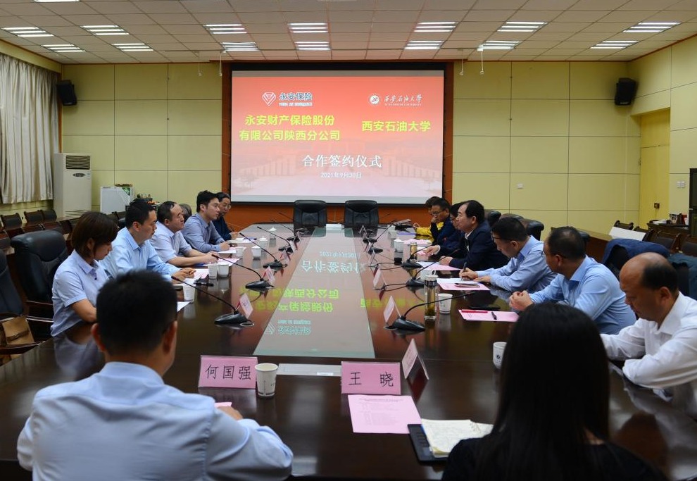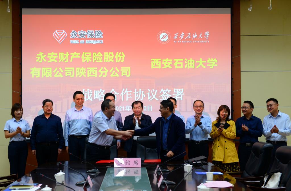 9月30日下午,我校與永安財產保險股份有限公司簽署“十四五”期間戰略合作協議,簽約儀式在雁塔校區第一會議室舉行。永安財產保險股份有限公司黨委副書記、工會主席李林泉一行五人,我校校長李天太、總會計師樊曉民出席簽約儀式。簽約儀式由校黨委副書記雷西合主持。