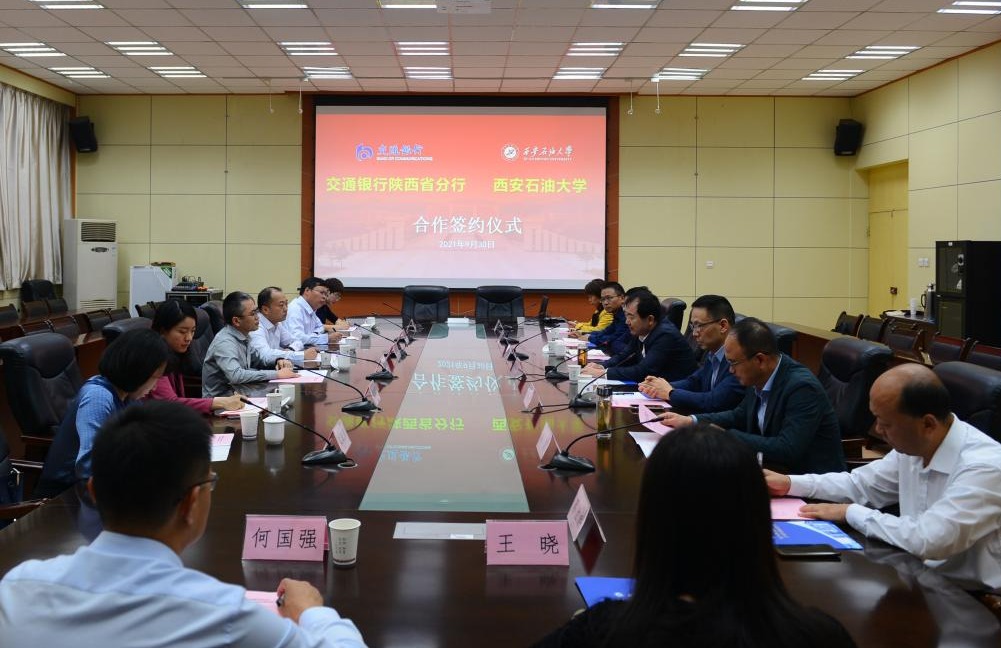 9月30日下午,我校與交通銀行陜西省分行簽署“十四五”期間戰略合作協議,簽約儀式在我校雁塔校區第一會議室舉行。交通銀行陜西省分行副行長蔣安祎一行六人,我校校長李天太、總會計師樊曉民出席簽約儀式。簽約儀式由校黨委副書記雷西合主持。