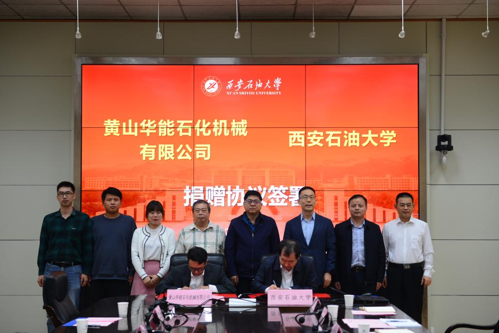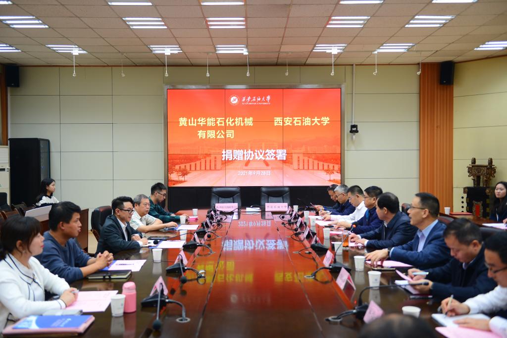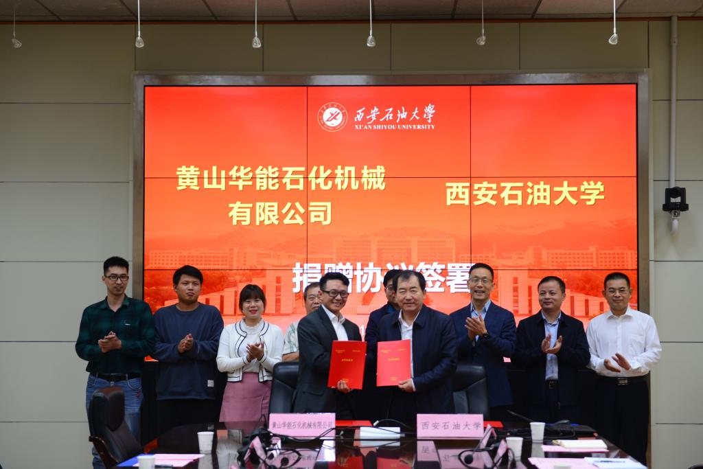 9月28日下午,我校在雁塔校區第二會議室舉行黃山華能石化機械有限公司合作捐贈協議簽署會。黃山華能石化機械有限公司董事長李楊(繼教院99級校友),技術總工田寬等一行5人,我校校長李天太、總會計師樊曉民出席會議。會議由校黨委副書記雷西合主持。