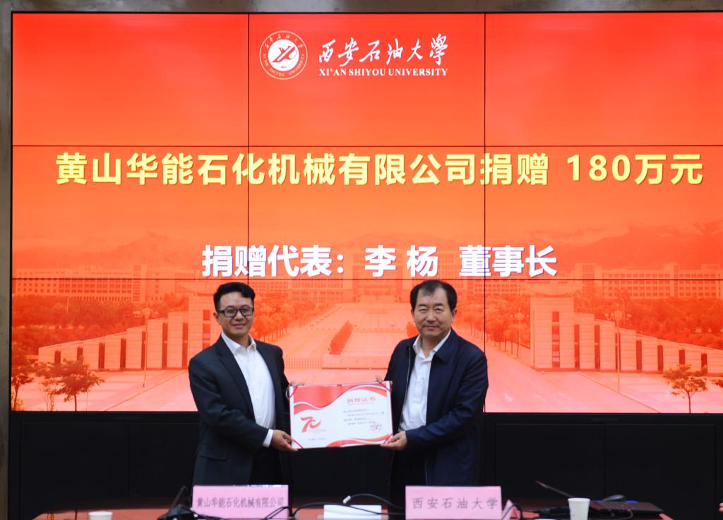 李天太校長對李楊董事長一行表示熱烈歡迎,對李楊校友一直以來對學校建設發展的關心與大力支持表示感謝。他簡要介紹了學校的辦學歷史和發展近況,以及對新能源、新材料、人工智能等發展展望。李校長表示,黃山華能石化機械有限公司長期以來與學校保持著良好的合作關系,時值學校70年校慶能慷慨捐贈助力學校建設發展,充分表達了對母校的關心關愛和支持,為學校事業發展增添了動力和活力。他希望黃山華能石化機械有限公司能以此為契機,進一步加強與學校的合作交流,一如既往地支持學校的建設發展,同時推動雙方在石油鉆采自動化、數字化設備及控制系統、工業智能設備、環保設備等多領域的合作。