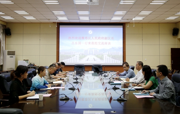 張榮軍副校長對雁塔區呂東國副區長一行表示歡迎,介紹了學校發展歷程、科研現狀及師資力量等情況,回顧了長期以來與雁塔區在科技成果轉化、人文景觀設計等方面開展的合作交流,感謝雁塔區人民政府一直以來對學校的支持與幫助,希望通過此次交流,雙方進一步加強交流合作,推動校地共建再上新臺階。