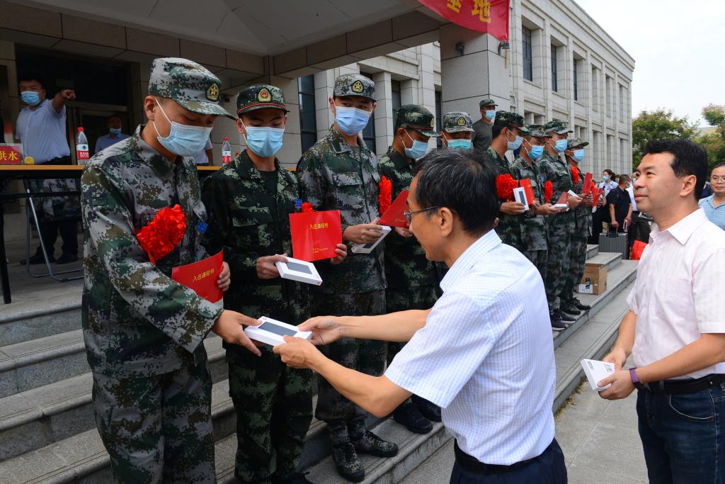 最后,張木副書記給九名入伍學生發放了紀念品并合影留念。