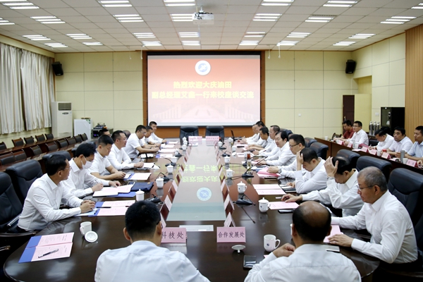 李天太校長對艾鑫副總經理一行表示熱烈歡迎,簡要介紹了學校的辦學歷史和發展近況,以及在科學研究、人才培養、校區綜合服務提升等方面做出的努力和取得的成績。他講到,多年來,學校堅持依托學科、行業和區位優勢,在技術成果轉化、應用技術攻關、產學研合作、實踐基地建設、創新創業等領域,先后與多家石油石化企業開展合作,探索建立了協同創新、精準服務、聯動發展的長效機制,得到了合作企業的普遍認可和高度贊同。簽署合作框架協議后,學校將進一步發揮科研優勢,將合作框架協議內容落地落實,以產學研用深度融合助力大慶鉆探工程公司高質量發展。