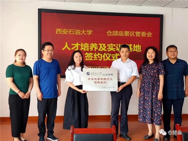 為深入貫徹習近平總書記在慶祝中國共產黨成立100周年大會上的講話精神,更好地發揮中華文明在“人類文明新形態”建設中的作用,提高我校人才培養的實踐能力,7月19日,楊戰社副校長帶領人文學院師生先后赴白水縣倉頡廟景區管委會和富平縣文化館,舉行了西安石油大學人才培養及實訓基地掛牌儀式。