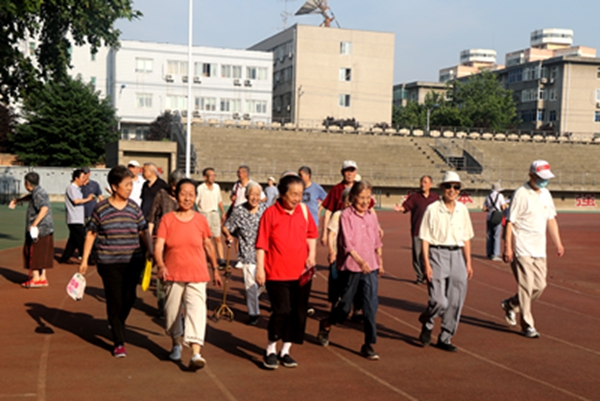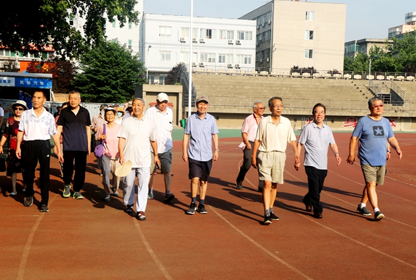 離退休黨總支書記李淵在開幕式上致辭,離退休處處長夏瑋宣布健步走活動開始。考慮到天氣炎熱,老黨員健步走活動因人而異,量力而行,自己設定健步走任務。盡管很多老同志年事已高,腿腳不是很靈活,但是大家精神抖擻,保持著社交距離,向著終點努力進發,心情愉悅地完成了當日的行走任務。