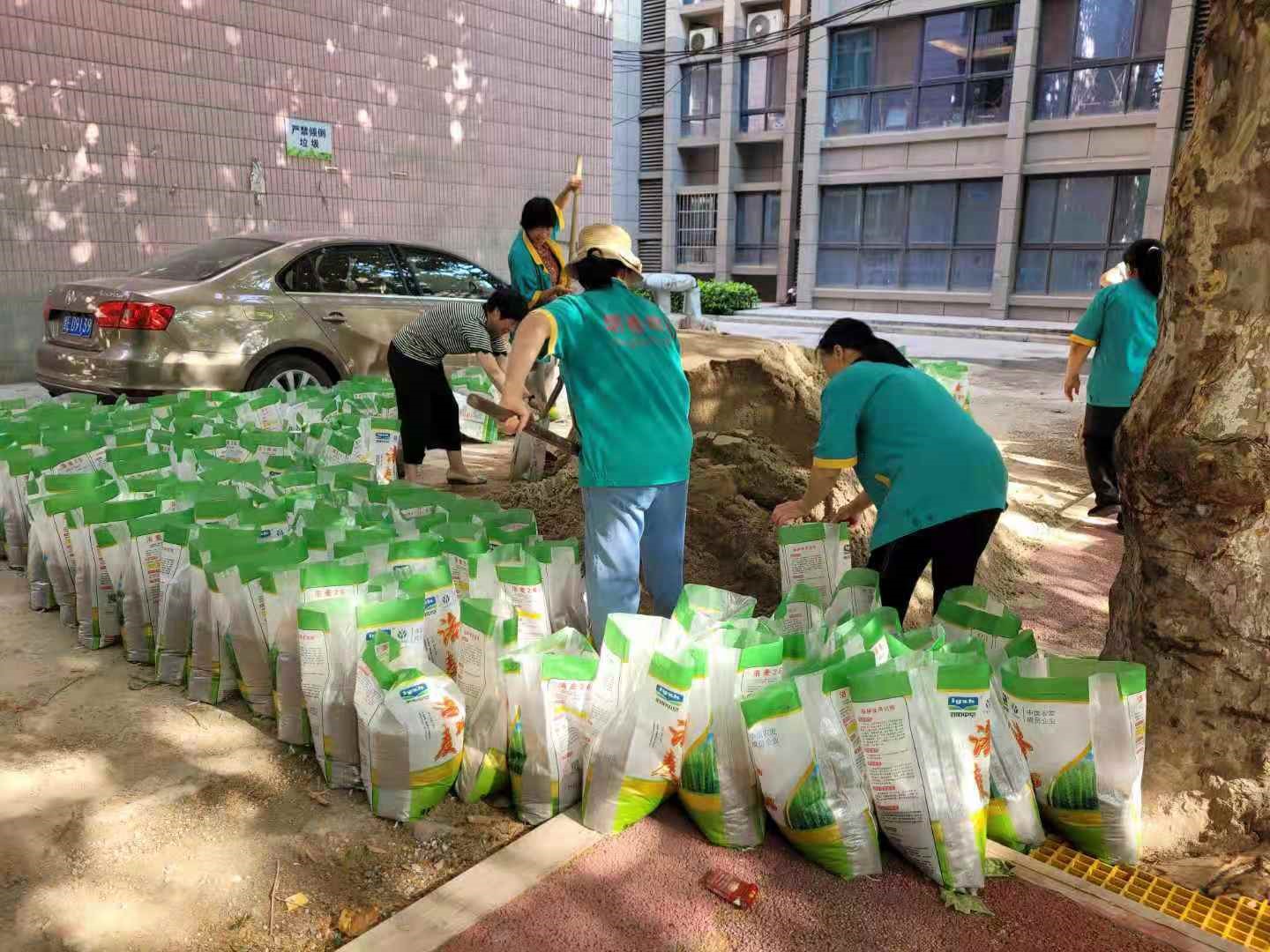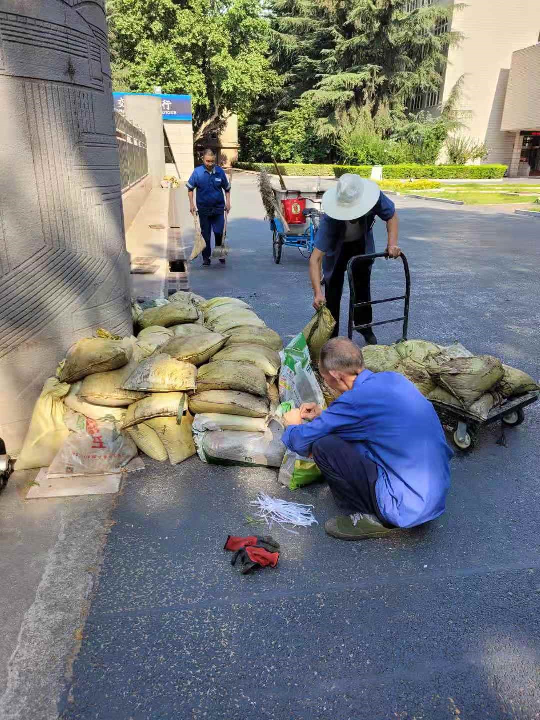 一時間,后勤黨員、干部、職工紛紛行動起來:大家各司其職,進行隱患排查和整改,防汛物資準備和值守人員落實。短短的一兩天時間里,對雁塔、鄠邑兩校區所有學生公寓樓、教學樓、院系樓、實驗樓、圖書館樓、食堂、住宅樓等樓頂屋面雜物及雨水排水管管口進行清理,確保樓頂雨水排水管口暢通;對沒有學生住宿的宿舍、未使用的教室進行關窗斷電,以防雨水進入樓內引發次生傷害;對雁塔校區南門、28~30號住宅樓地下車庫、鄠邑校區地下車庫等低洼重點區域的防汛物資進行檢查,對破損沙袋進行替換和更新,先后在雁塔校區補充防汛沙袋200多條,鄠邑校區新增防汛沙袋1200多條;對校園內雨水收水井內雜物進行清理,確保雨水井及排水管道通暢。此外,為防止大風暴雨導致病枯樹枝條掉落發生危險,重點對枯枝朽木進行排查、修剪,消除安全隱患。