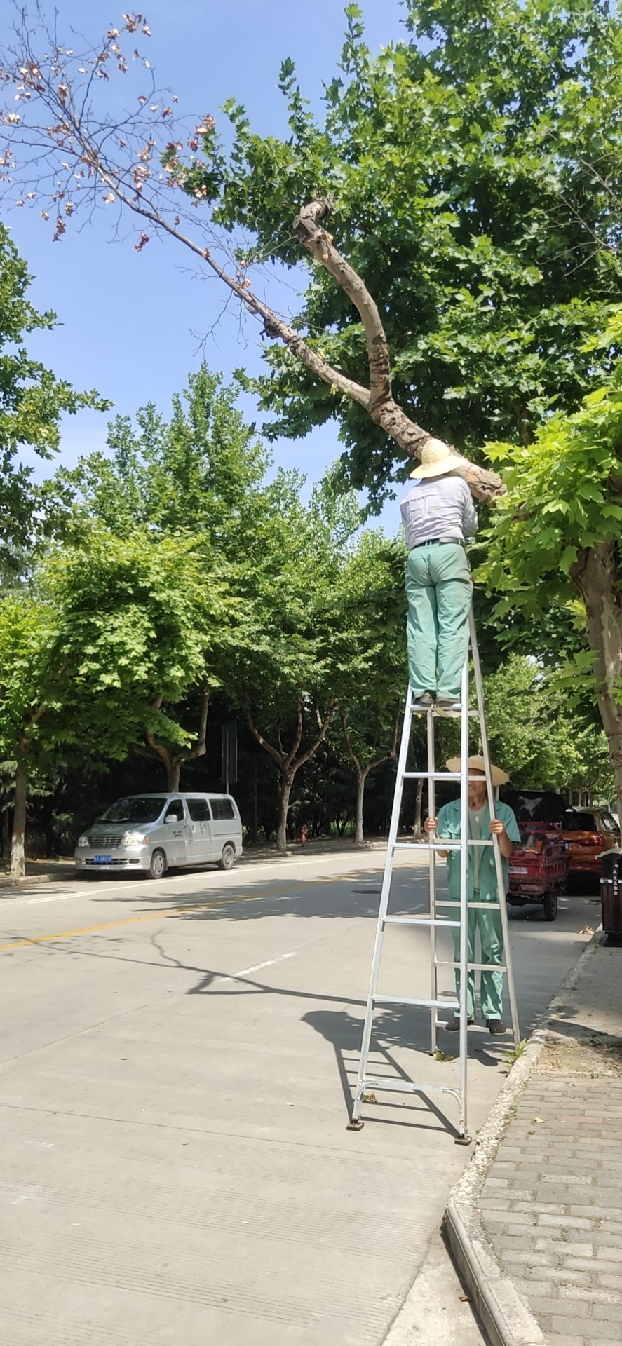 組織人員進行校園內喬木病害枝條的修剪