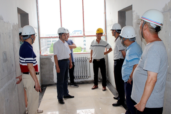 楊戰社副校長一行先來到19#、20#學生公寓樓項目工地,目前工程已進入收尾的攻堅階段。在施工現場,楊戰社副校長重點對工程的質量及安全措施進行了檢查。他強調:項目部及監理單位要進一步強化對安全生產的重視,嚴守安全紅線,嚴格落實監管職責,杜絕一切安全生產責任事故發生;暑期高溫炎熱,施工人員及管理人員一定要做好防暑降溫工作;在保證質量、安全的前提下,確保按期竣工驗收、投入使用。