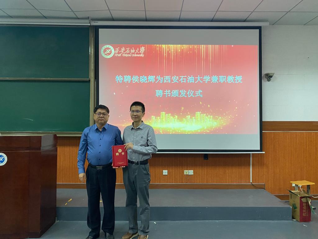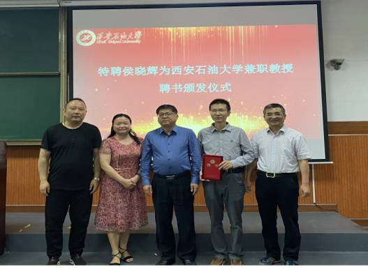 樊曉民總會計師簡要介紹了西安石油大學和經濟管理學院的發展現狀。他談到,侯曉輝教授能加入我校經濟管理學院做兼職教授是對學校尤其是經濟管理學院的積極支持,將大幅提升學校管理類學科建設水平,增強人才培養質量。樊曉民總會計師為侯曉輝教授頒發了兼職教授聘書。