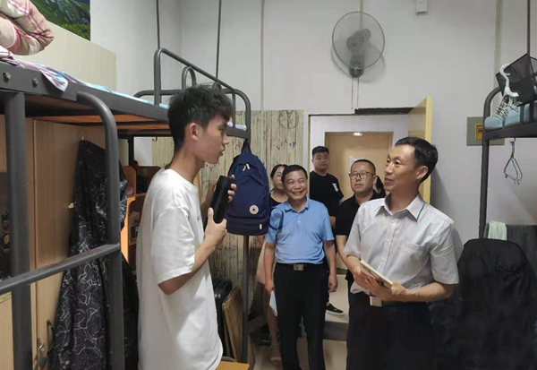 省教育廳副廳長高嶺在檢查走訪過程中,認真詢問了我校校園穩定安全工作開展情況,聽取了學校負責人關于學校穩定安全工作匯報。同時分四個檢查組實地查看了我校工程訓練中心、學生公寓、學生食堂、校醫院、校園監控中心、消防控制室等重點區域。高嶺副廳長指出,要牢固樹立紅線意識,時刻繃緊安全這根弦,持續深入加強師生的安全教育,切實提高師生的安全意識,夯實安全責任,加強重點區域、重點環節安全隱患排查和督導檢查,及時整改落實,把穩定安全工作抓實抓細抓到位,嚴格落實常態化疫情防控措施,全力推進新冠疫苗接種工作,確保校園安全穩定。